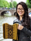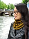 Named after the city’s nickname, “Mokum”, a yiddish word that means “place” or “safe haven”, this cowl is inspired by everyday life in Amsterdam. The rhythmic geometric motifs are pulled from patterns found around the city from the canals to the lively walls of Amsterdam Centraal. You don’t even need to leave your bike to catch a glimpse of the striking lines marking the speed bumps along your way. The Mokum Cowl sits cozily next to your face and is designed with double stranded colorwork to block out the unforgiving wind on that chilly bike ride home.