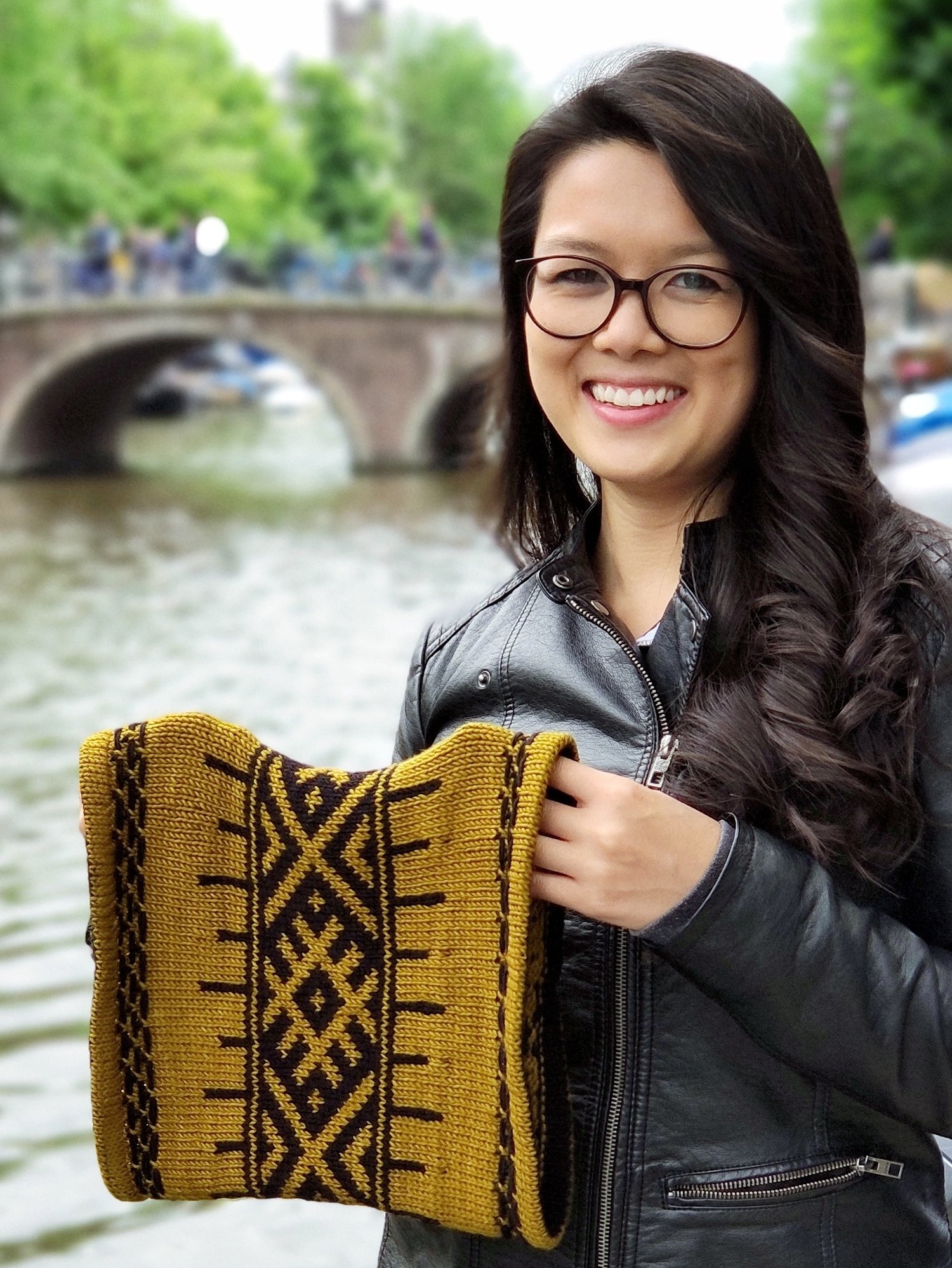 When I was asked by Urth Yarns to represent Amsterdam as part of their “Knitters of the World” project my immediate reaction was: “You know I’m not Dutch, right?”. Right after that, I had a realization: That no matter where I travel to or for how long I’m gone, coming back to Amsterdam feels like I’m coming home. Living in Amsterdam, I’m bathed in a sense of relief and comfort. It goes deeper than knowing a city; its pace of life, its language, and its people. It’s a resonance, a harmony that I didn’t know that I could have with a place. When I’m swept up in the humming current of bicycle traffic, noticing details on buildings, catching reflections in windows as I sail by I feel it. It sings along with the whirring of pedals and the pulse of boats on the canals and I sing right along with it: “I’m home”.