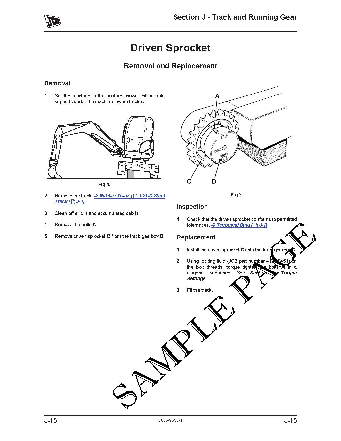 JCB 8050RTS EXCAVATOR: SERIAL NO. 1741500 & UP