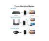 - Trois modes de fonctionnement : choisissez parmi le mode répéteur WiFi, routeur ou point d'accès sans fil pour répondre à tous vos besoins en réseau. La connexion Ethernet LAN offre également la possibilité de connecter des appareils filaires au WiFi haut débit.