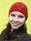 Spathodia campanulata, also known as African Tulip Tree, Fireball, and Flame of the Forest, is prevalent in warm climates from India to South America. Water collects in the abundant clusters of vivid orange blossoms, making the tree a favorite destination for hummingbirds, parakeets and other tropical birds. On a chilly day, the lightweight Campanulata cloche and fingerless gloves, with their deeply embossed leaf and petal motifs, will bring you warmth, glamour, and a touch of the tropics.