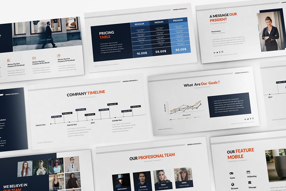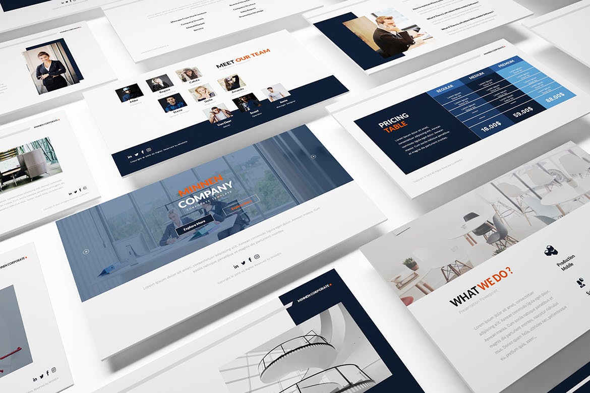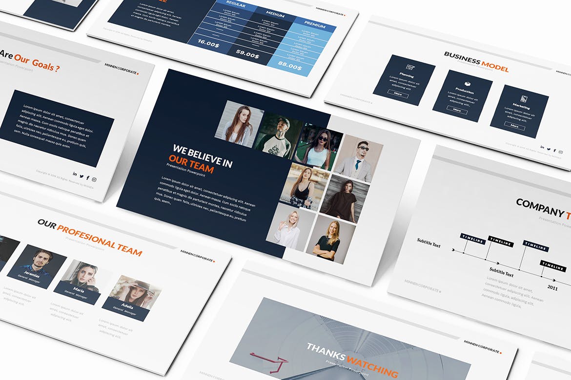 Extended LicenseMinnen Corporate PowerPoint Presentation is a multipurpose corporate company or any business presentation template. with a simple design, clean element to help their marketing proposal. High-quality brand presentation asset.
