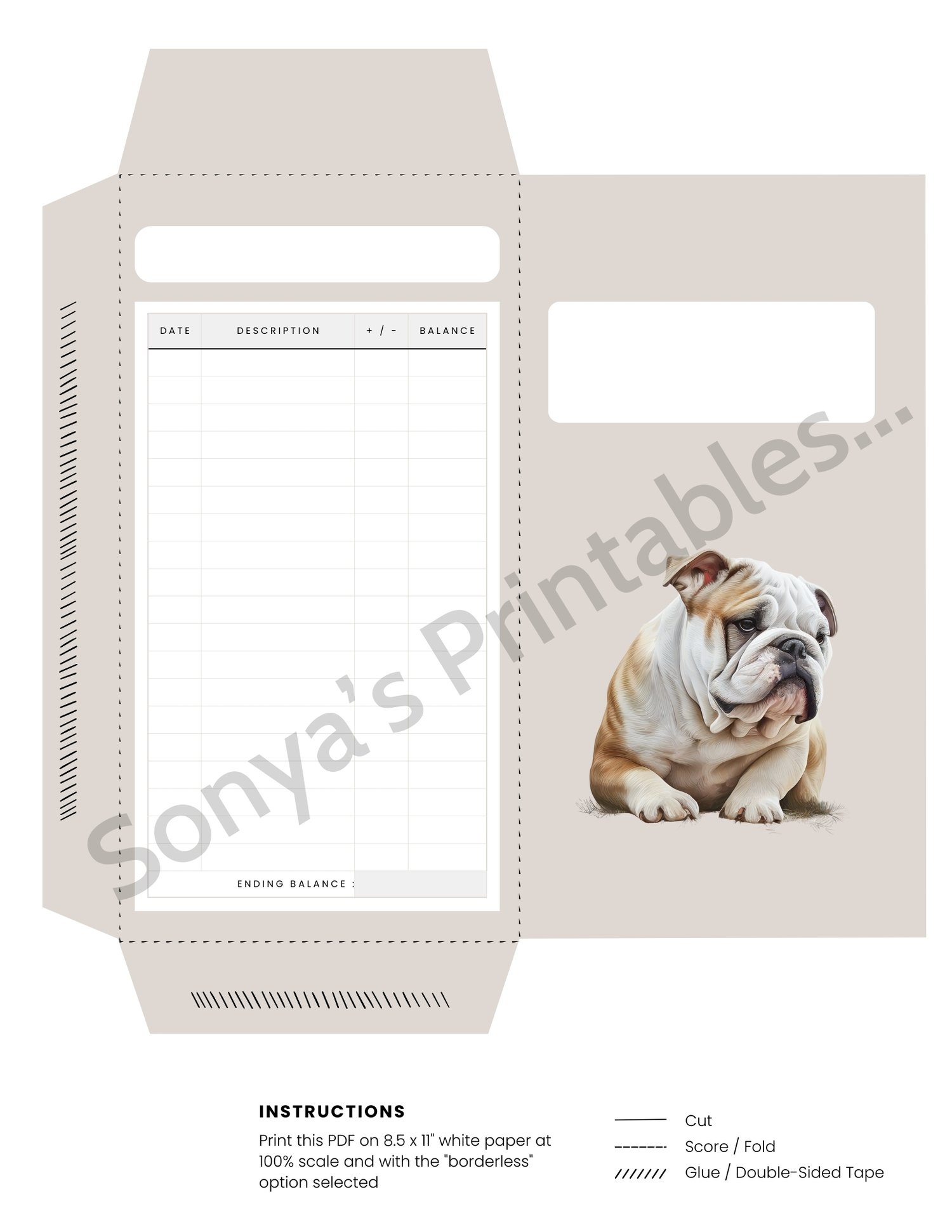 English Bulldog Cash Envelopes With Expense Tracker | Printable Bulldog Cash Envie With Budget Tracker | Cash Spending Log
