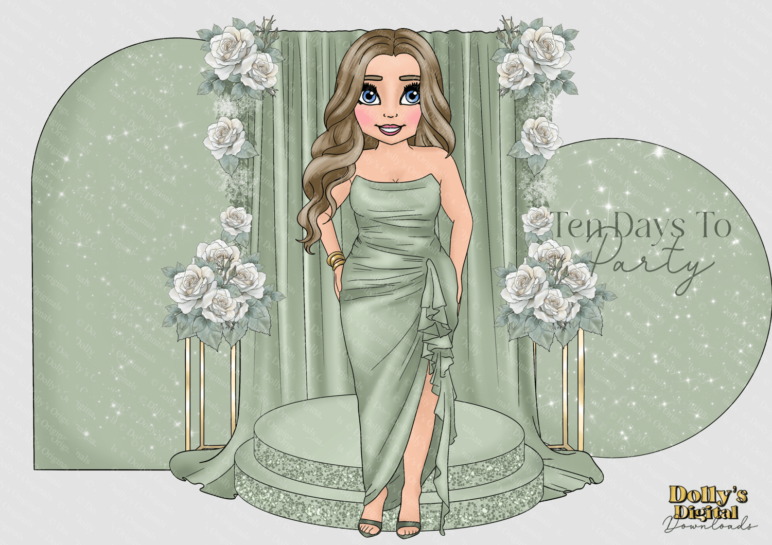 Instant digital download of our Ten Days To Party Sage Plus Size Doll Character Bundle PNG (55 PNG’s)