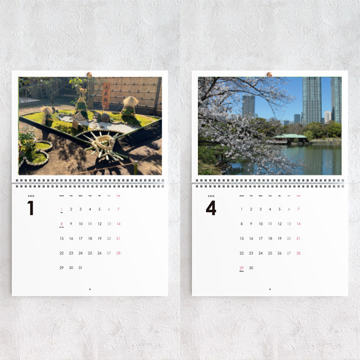 The calendar is connected in the middle via rings and a small hole in the top makes it possible to hang it on a wall.