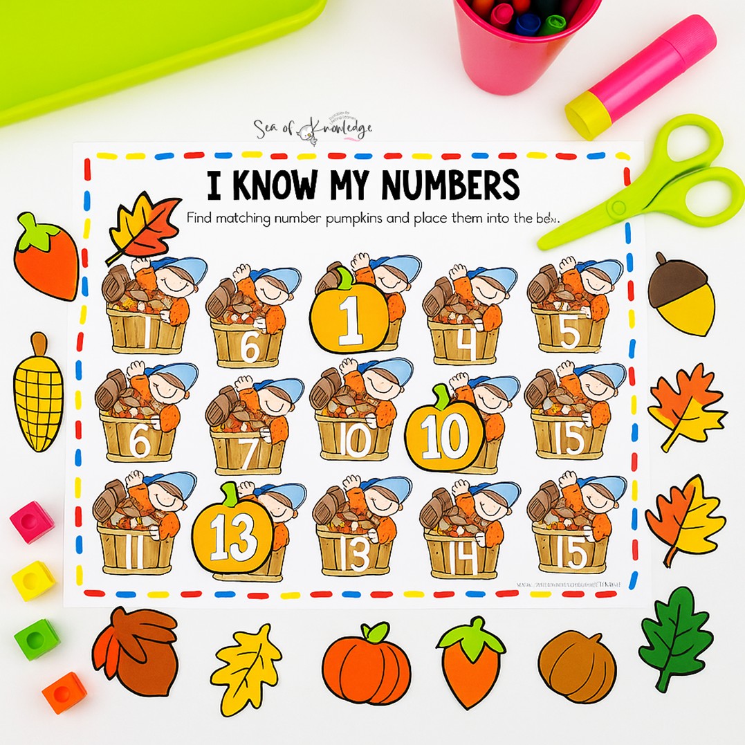 - Pumpkin Number Cards β matching pumpkins to the correct numbers