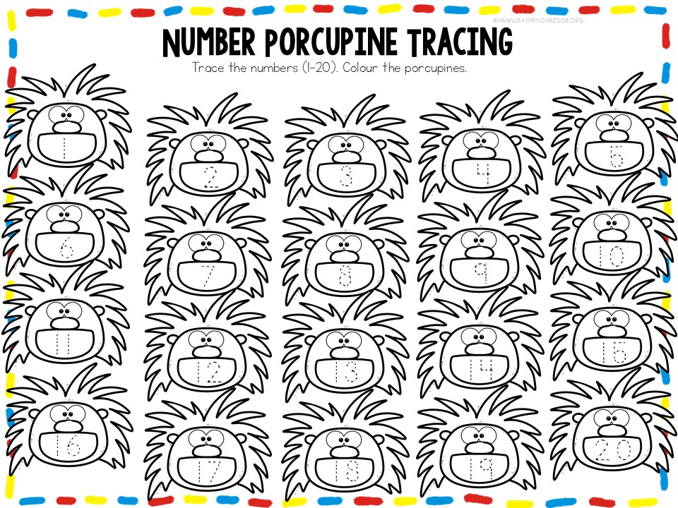 - Number Porcupine Tracing β fine motor and number writing practice (1β20)