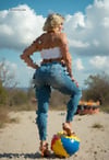 79 AI generated Images of Beautiful Woman and Beachballs - A pictorial reminder of the tightly inflated Holiday last summer.