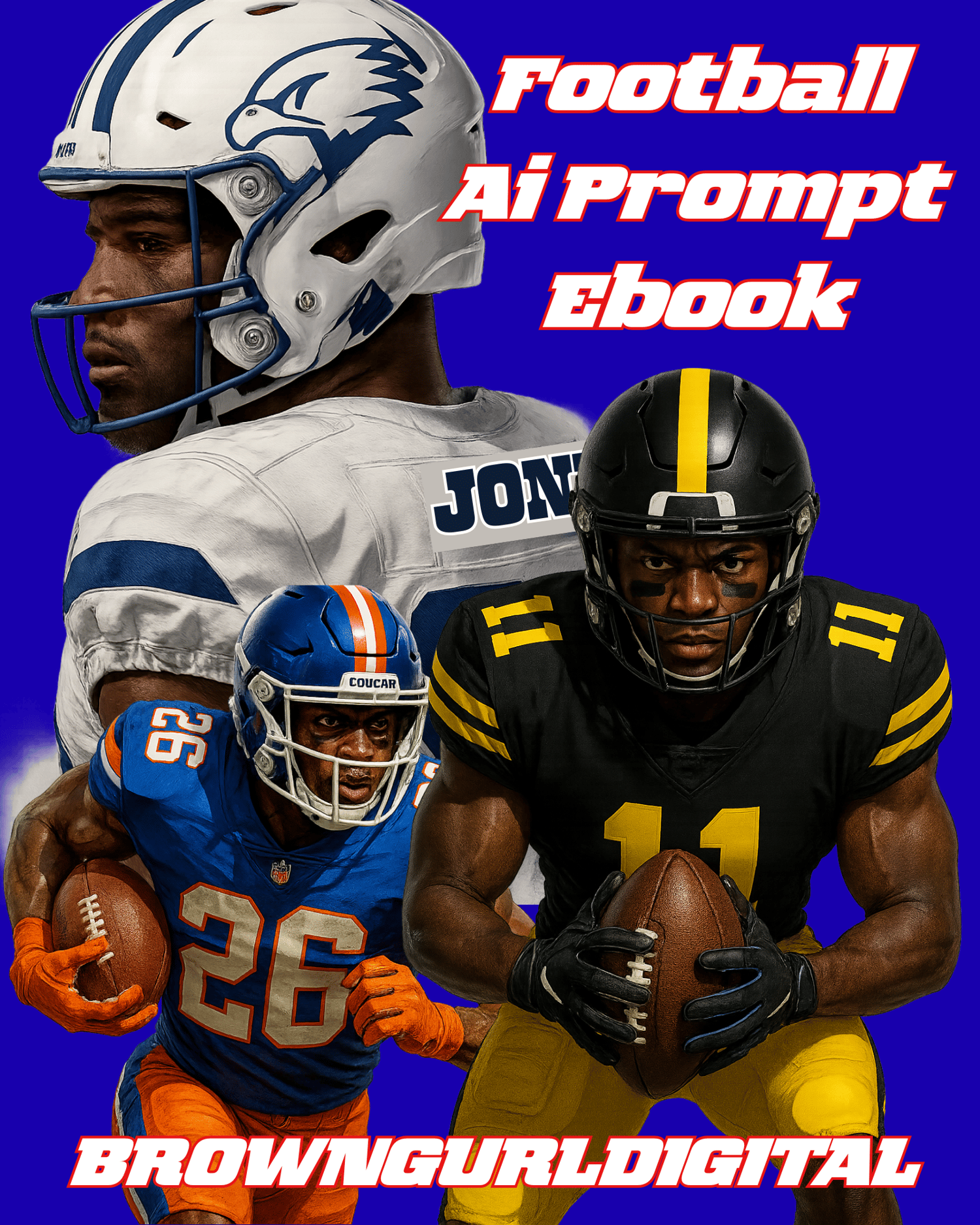 Score big with your designs using the Football AI Prompt Ebook. These expert-tested prompts help you generate stunning football art for merch, posters, and fan collections.