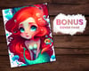 A beautiful, cute adorable mermaid girls collection with great detail for coloring and huge anime eyes! This is a beautiful and detailed illustration set for your coloring joy made by The Botanical Nook (TheBotanicalNook)! Coloring is such a fun activity to create your own, unique and beautiful works of art. You can instantly print it on your home printer and go right to coloring. Made a mistake? No problem! You can print it out again and start over.