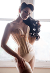 'It takes time to master the art of corsetry and as a consequence corsets are (or at least should be) expensive. Toiles are an absolute necessity (fittings can number two to three or more), precision is paramount, and there is a mass of knowledge necessary for a professional standard to be reached. Each corset can take from 20 – 200 hours depending on complexity and embellishment. Understanding anatomy, how fabrics behave and the best way to arrange panels and boning for fit are incredibly important. This craft cannot be learned in a weekend – a period of trial and error is unfortunately par for the course and many fall at this hurdle. In a time when juggling life is becoming increasingly difficult most people just do not have the time to make failure after failure and climb that steep learning curve. If, however, you realise you enjoy the challenge, you will be rewarded with a quality product that you have made yourself, and an incredible sense of achievement.'