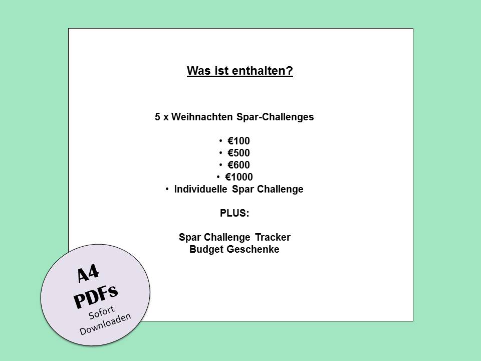 Weihnachten Spar Challenges / Sparplan Weihnachten deutsch PDF / Vorlagen zum Ausdrucken