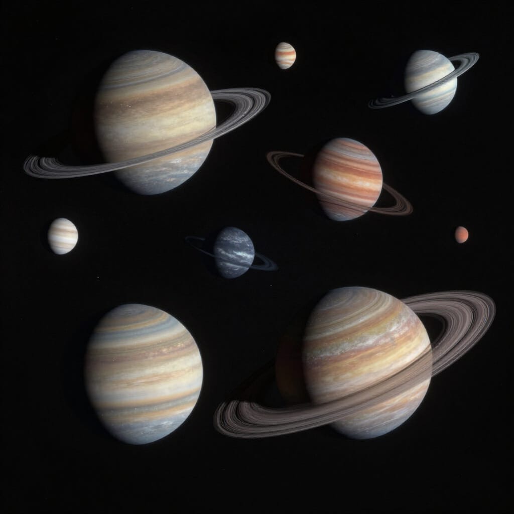 - Majestic Moons: Explore the serene beauty of swirling gas giants illuminated by a distant sun.