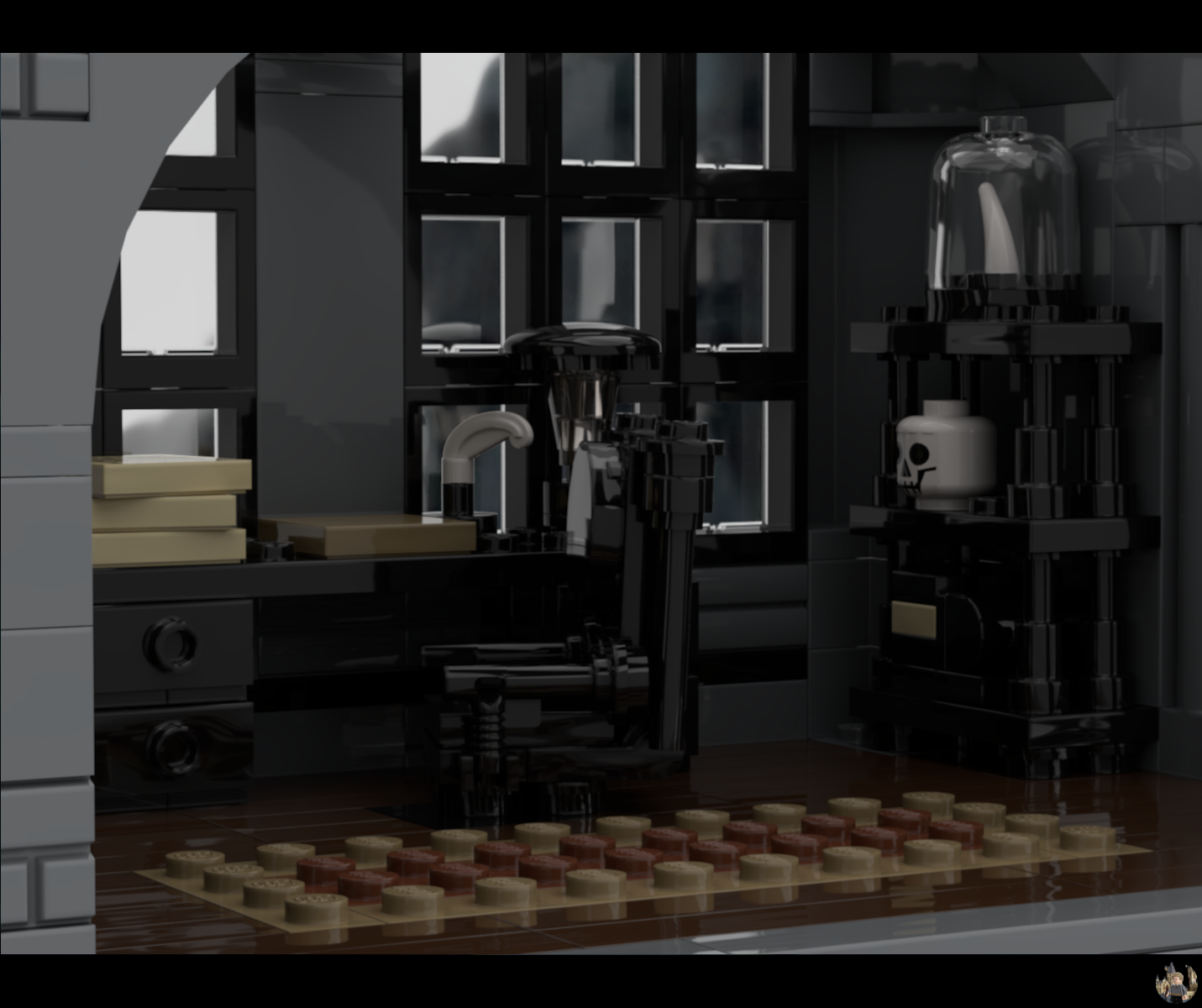 On the first floor you can find Draco's chamber as well as Lucius' office, both rooms are again packed with details like a closet, a canopy bed, a Nimbus 2001 and Lucius' collection of dark magic artefacts as well as a desk with a very detailed seat in front of it.