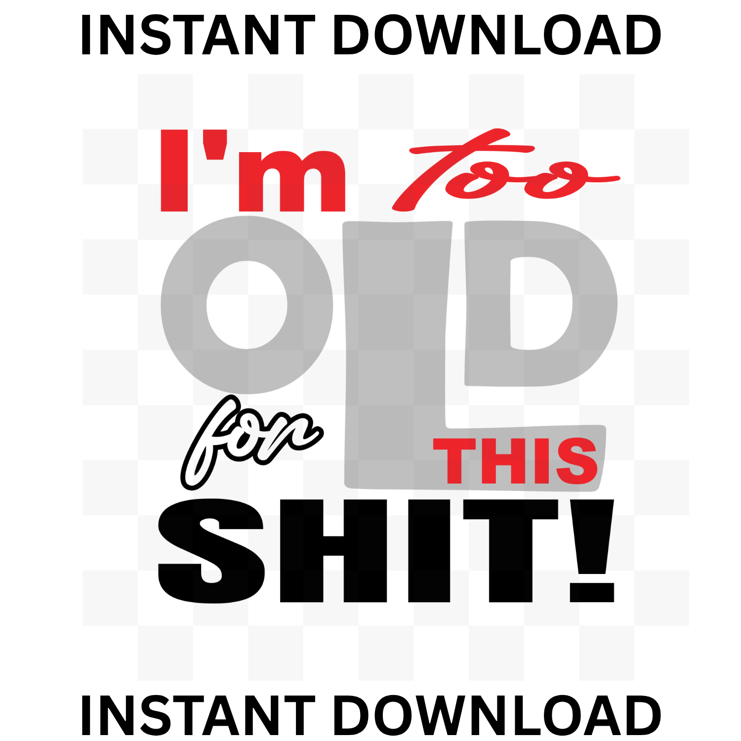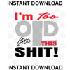 🖤 I’m Too Old for This Sh*t PNG – Funny Adult Humor Design