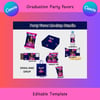 Celebrate your graduate’s big day with personalized party favors! This Graduation Party Favor Mockup Bundle includes editable templates for chip bags, Hershey bars, Pringles cans, water bottles, juice pouches, Rice Krispies treats, gift bags, and boxes. These templates are fully customizable using Canva—no design experience needed! Simply drag and drop your photos, update the text, and print. Perfect for creating a cohesive and memorable graduation party theme.
