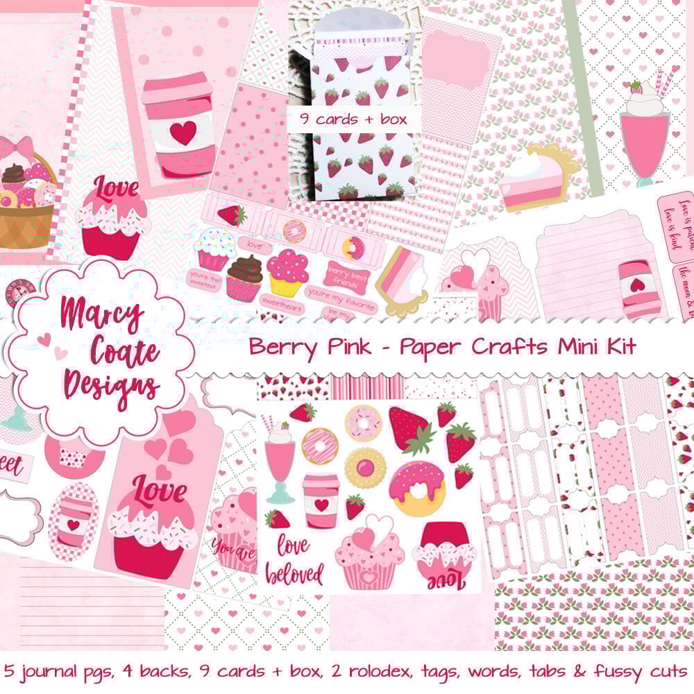 Mini kit includes 5 journal pages, 4 background pages, 9 cards, a printable box to keep the cards, 2 rolodex / memorydex cards (front & back), tags, words, tabs & fussy cuts. It is ready to print on US Letter or A4 paper. I recommend your nicest copy paper or presentation paper for the journal pages, and light to medium weight cardstock for the rest.
