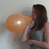 Daphne challenges herself to blow up the orange balloon as big as possible until it pops. The sharp POP surprised her in the end.