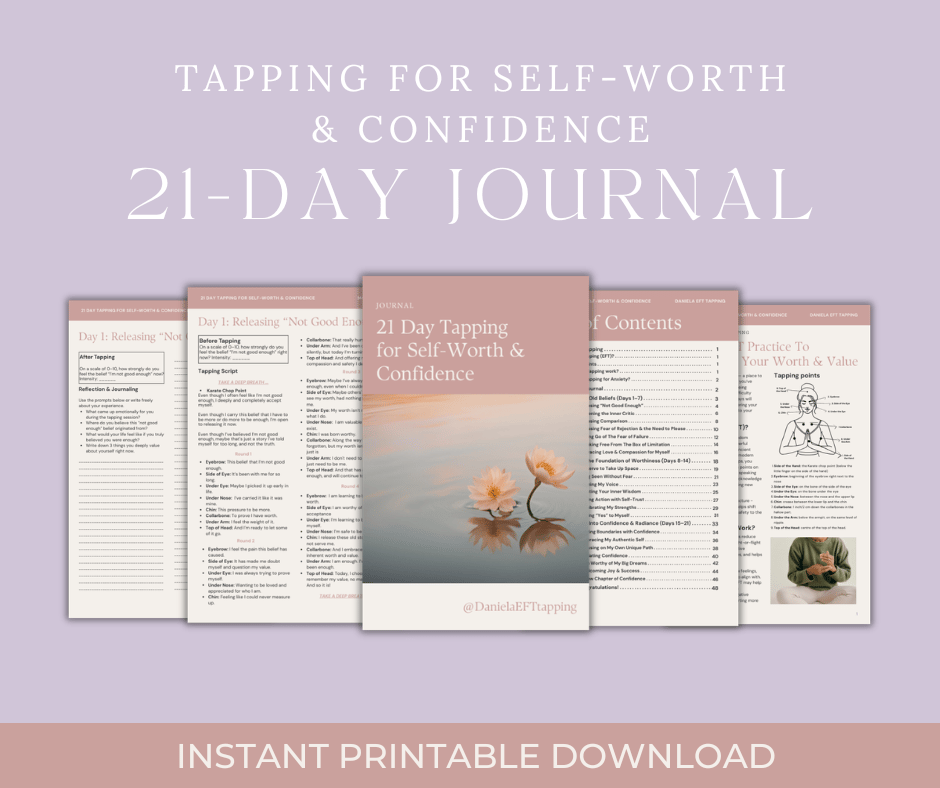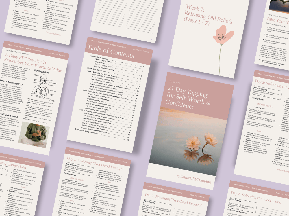 This journal is your safe space — a place to tap, reflect, and grow. Whether you’ve struggled with feelings of not being enough, fear of judgment, or difficulty speaking your truth, these 21 days will gently support you in remembering your true value and stepping fully into your light.