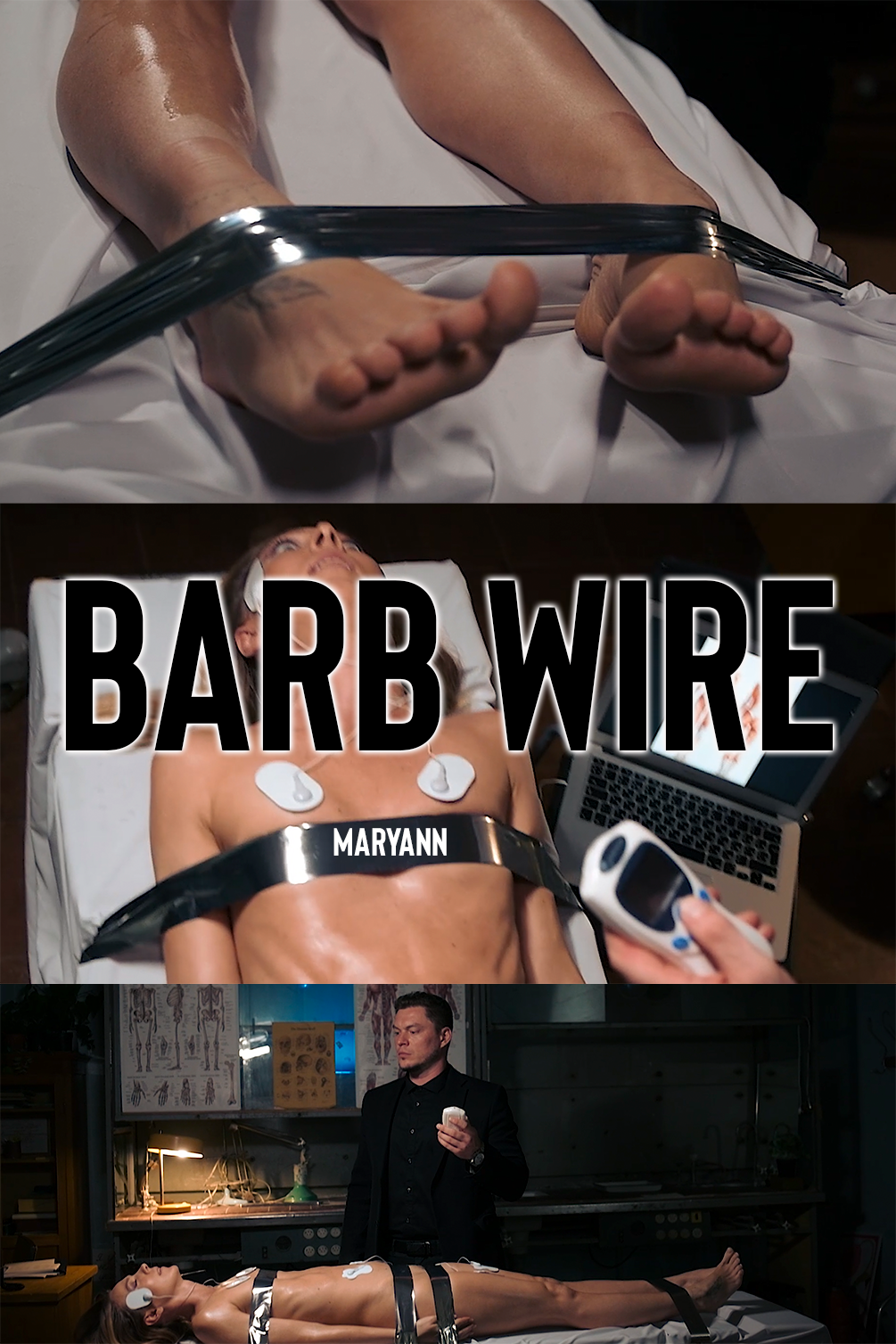 Scene opens in a dark futuristic interrogation chamber the lighting is focused overhead looking straight down at the prisoner. There is a female prisoner being interrogated on a futurisitc glass table. She is completely nude and her body glistens from her sweat. There are electrodes all over her body, her head, arms, legs, abdomen and breasts. A machine asking the questions (could be an actor or actress in a costume). The prisoner cannot move as if the wires have immobilized her to the table. Her hands and ankles are cuffed to the table. She has been tortured for hours and can hardly speak, let alone move. She is in fear, she knows there will be no way out.