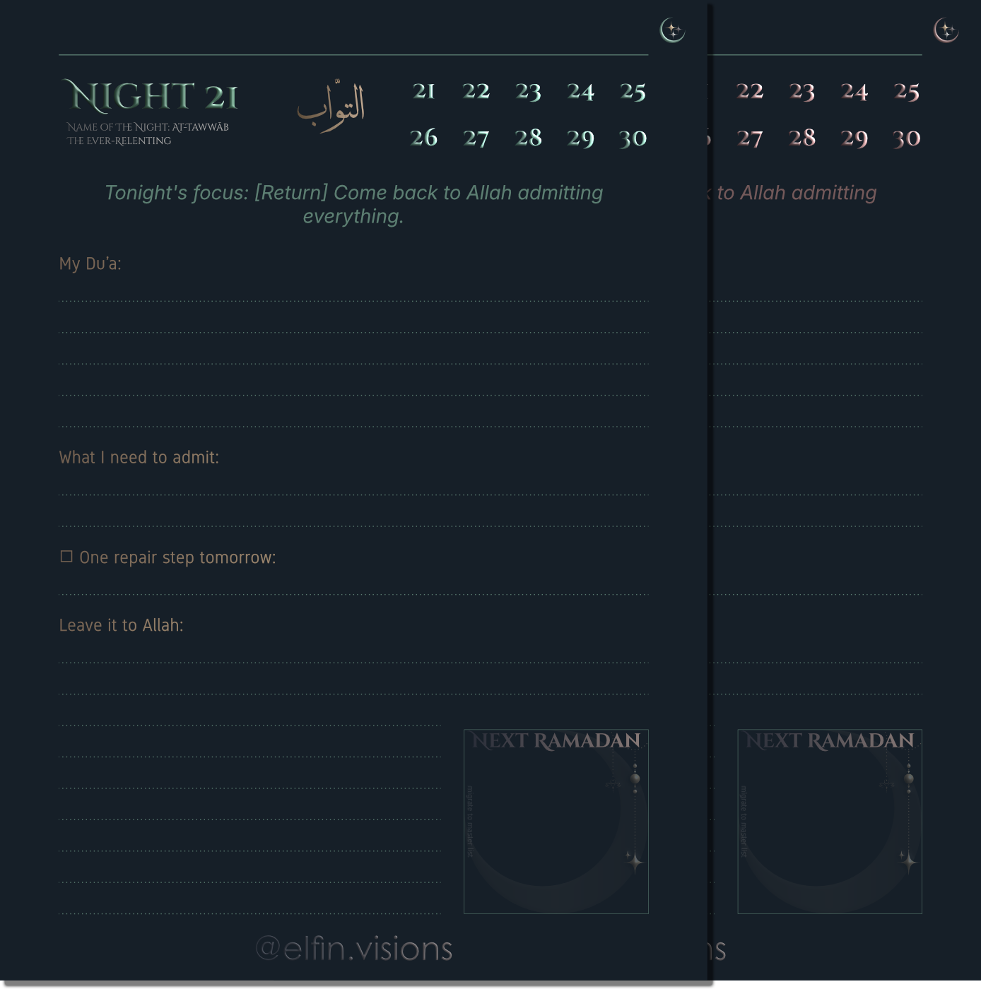 - Night Pages: 21–30 with guided focus each night