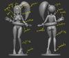 The 3d print set includes everything from the exclusive set + 3d print files in STL. The print is in the bikini outfit with the ponytail hairstlye, with optional parts for bikini and two tongue options, there are files included for assembly and color reference.