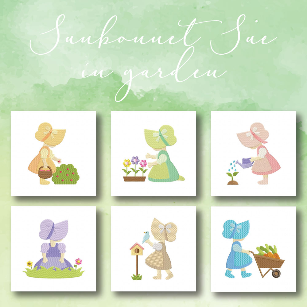 Machine embroidery design bundle, sunbonnet sue in garden, INSTANT DOWNLOAD