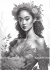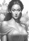 10 Floral Princess Vol 2 Coloring Pages | Printable Adult Coloring Pages | Download Grayscale Illustration | Printable