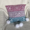Be creative, have fun, the steek means there are no ends to weave in! The amounts of each color required will depend on how many colors you pick and where you choose to use them. As a guide for the cushion pictured, I used the following quantities of Cygnet Pure Wool Superwash DK: