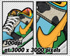 2) PNG with no background: 3000 pixels x 3000 pixels