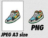 Digital Sneaker Art downloadable files in JPEG, PNG, SVG.