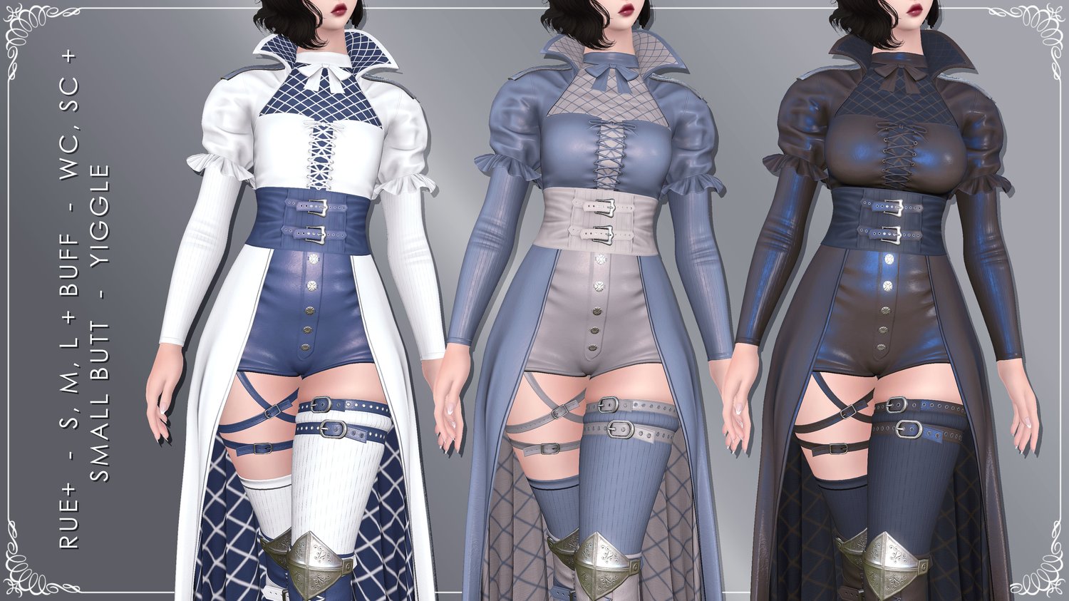 - Skirt, collar, chest panel, epaulettes and sleeve ruffles can be toggled off.