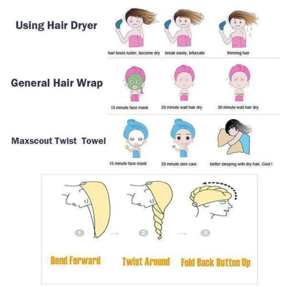 Super water-absorbent, fast-drying, time saver, drying your hair 100% naturally Quick Magic Hair Dry Hat! Electric hair blower no longer needed! Reduces the risk of split ends.