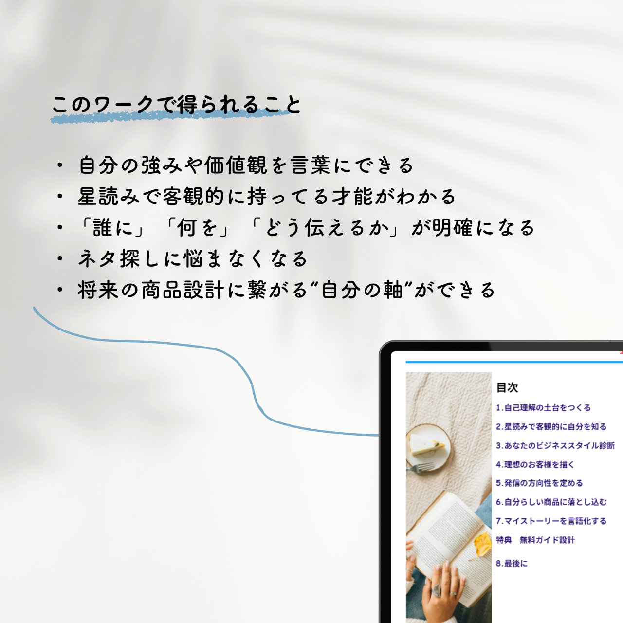 - 迷わなくなる:強みや価値観が明確になるから、商品選び・発信がブレない
