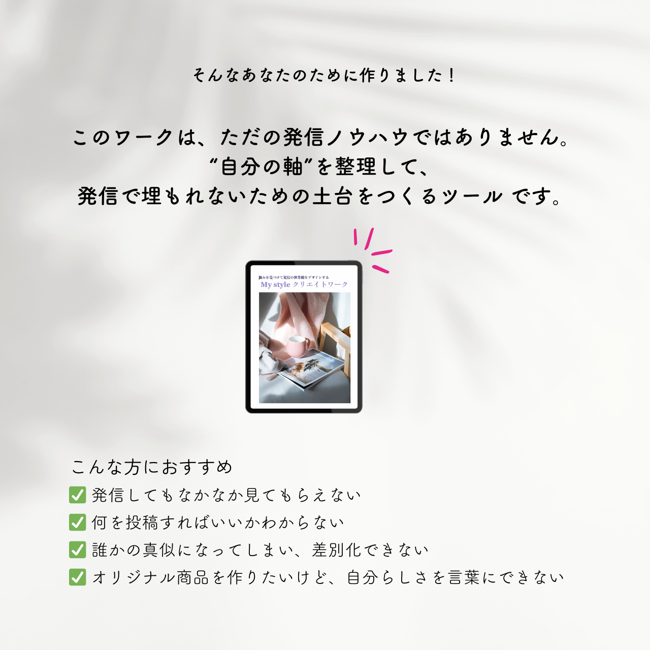 💡 ただ再販するだけでなく、 “自分の軸” を商品や発信に反映できるようになる ワークです。