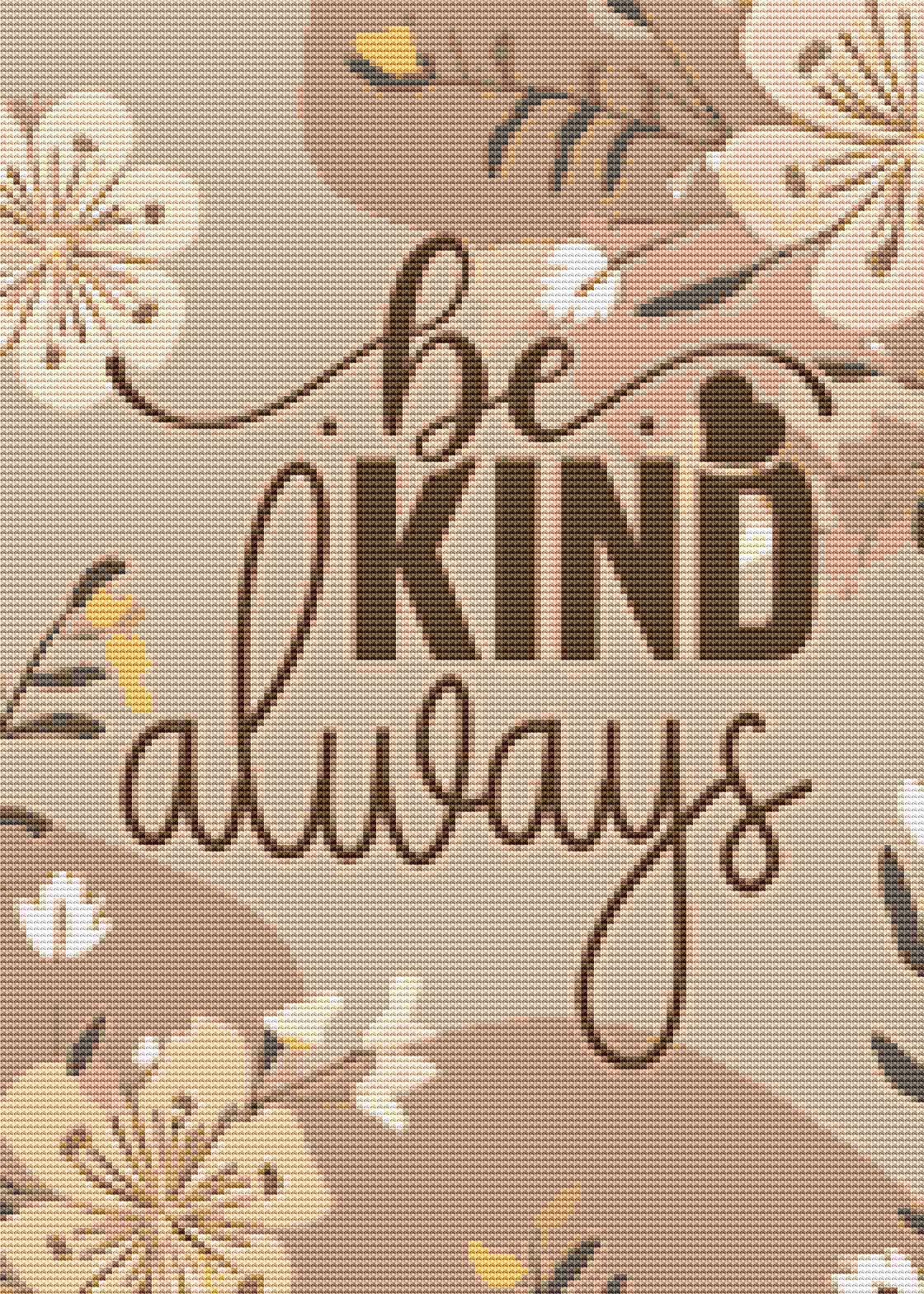 Stitch a timeless message of warmth and compassion with this gentle “Be Kind Always” cross stitch pattern. Designed in soothing neutral tones with soft florals and flowing hand-lettered typography, this piece feels calm, comforting, and heartfelt. The earthy color palette and elegant script make it a relaxing project that suits modern farmhouse, neutral nursery, or cozy home decor styles, offering a meaningful reminder that feels both beautiful and uplifting.