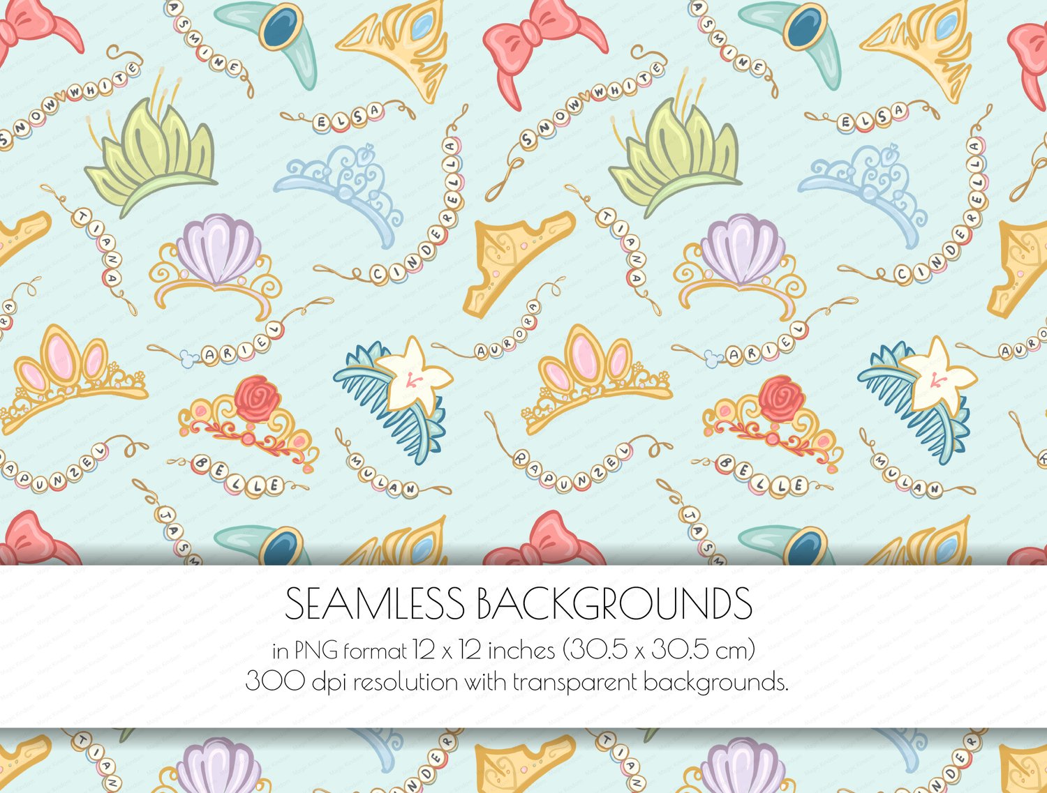 1 Disney Princess Crowns Seamless Background in PNG format 12 x 12 inches (30.5 x 30.5 cm) 300 dpi resolution .