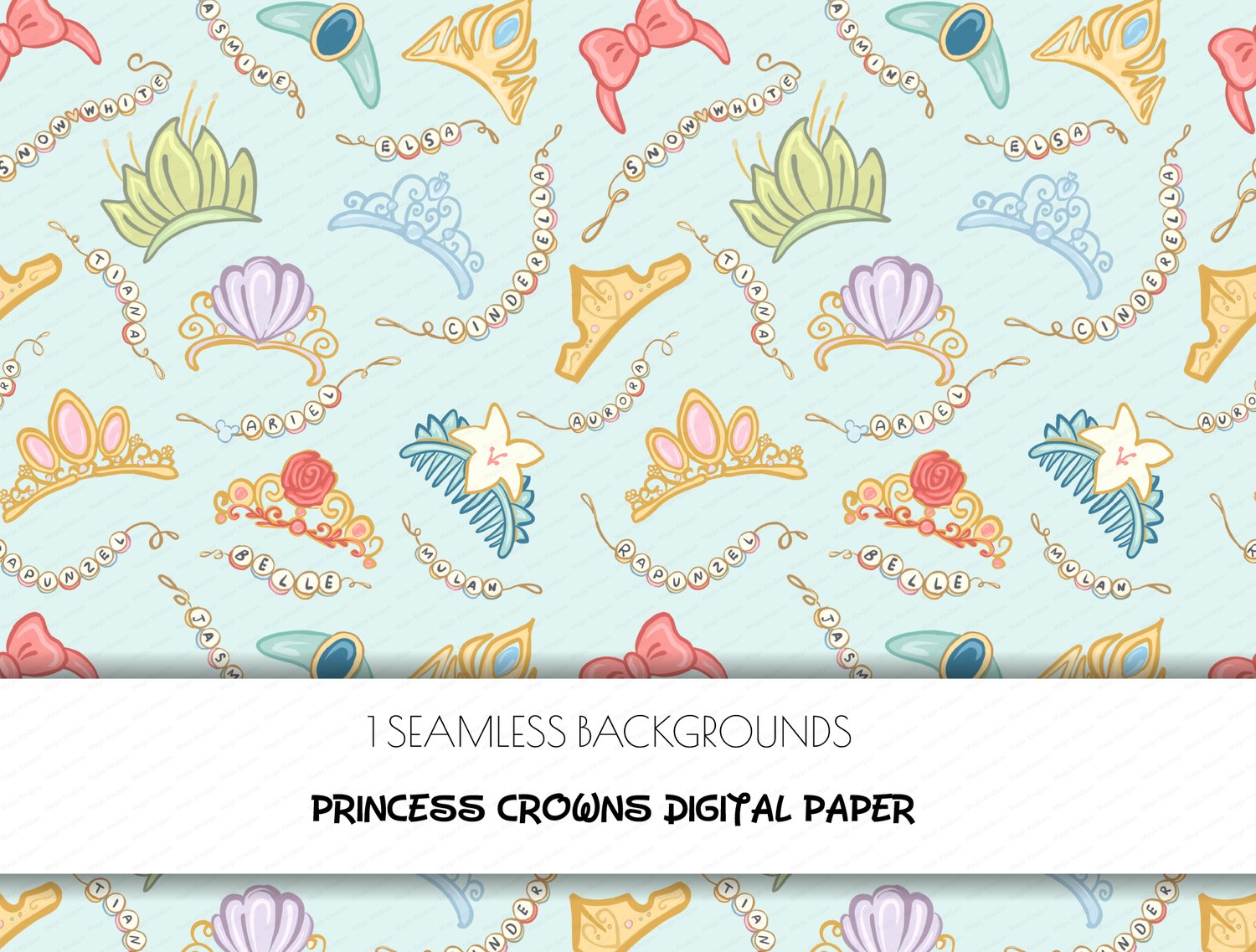 This Disney Princess Crowns Seamless Background will be perfectly sutable for projects such as printing projects, sublimation,party invites, scrapbooking, greeting cards !!!