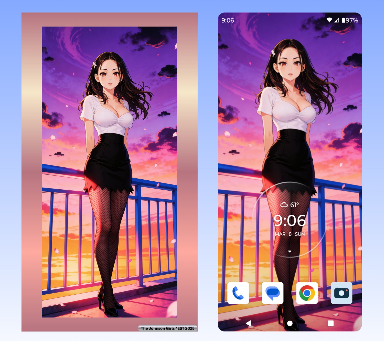 Real-device tested for perfect fit (no zoom/crop issues) — icons moved, widgets set for clean view.