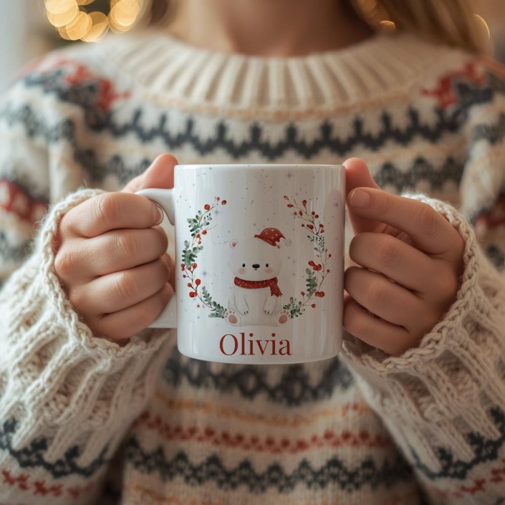 Christmas Wreath and Teddy Bear Mug – Personalized Gift for Kids & Family / Коледна чаша с венец и мече – персонализиран подарък
