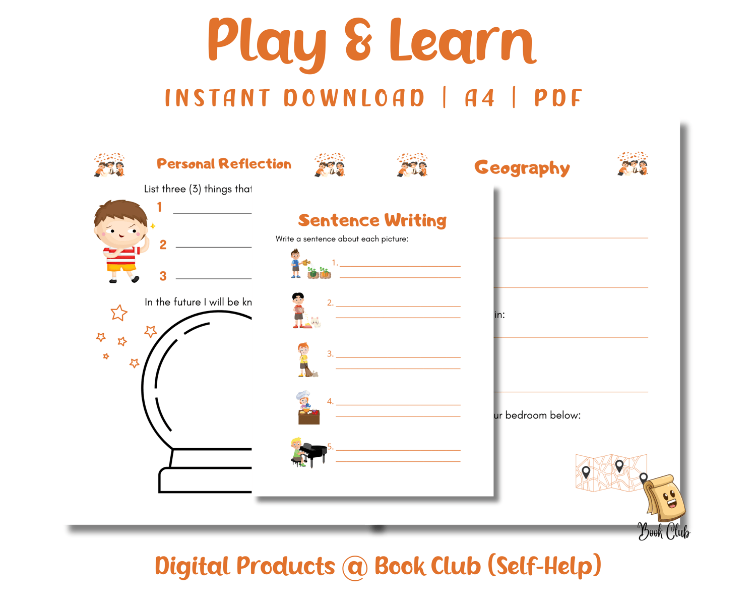 Unlock creativity, knowledge, and well-being with our Play & Learn Activity Booklet โ a comprehensive, engaging resource perfect for young learners eager to explore and grow. Packed with 50 pages of hands-on activities designed to inspire imagination and develop essential skills across multiple subjects.