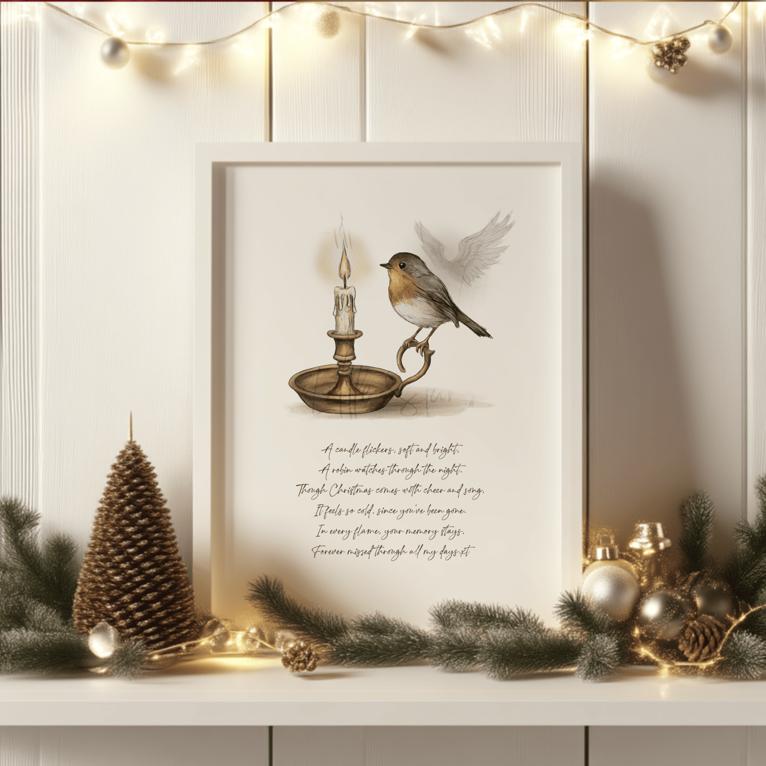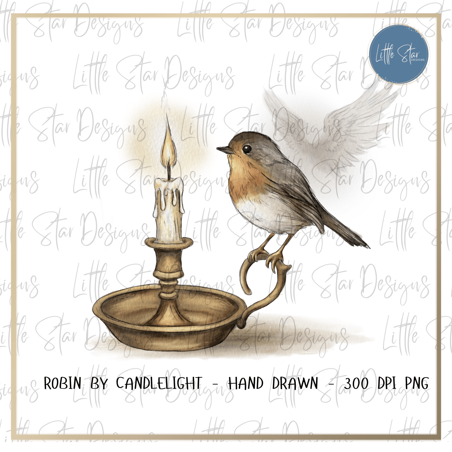 This is a high-quality hand drawn (300dpi PNG) digital download of my original artwork, titled 'Robin by Candlelight', designed for sublimation and print.