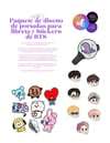 - Plantillas de Stickers (PDF), para imprimir en hojas autoadheribles con personajes de BT21 y figuritas kawaii relacionadas con BTS.