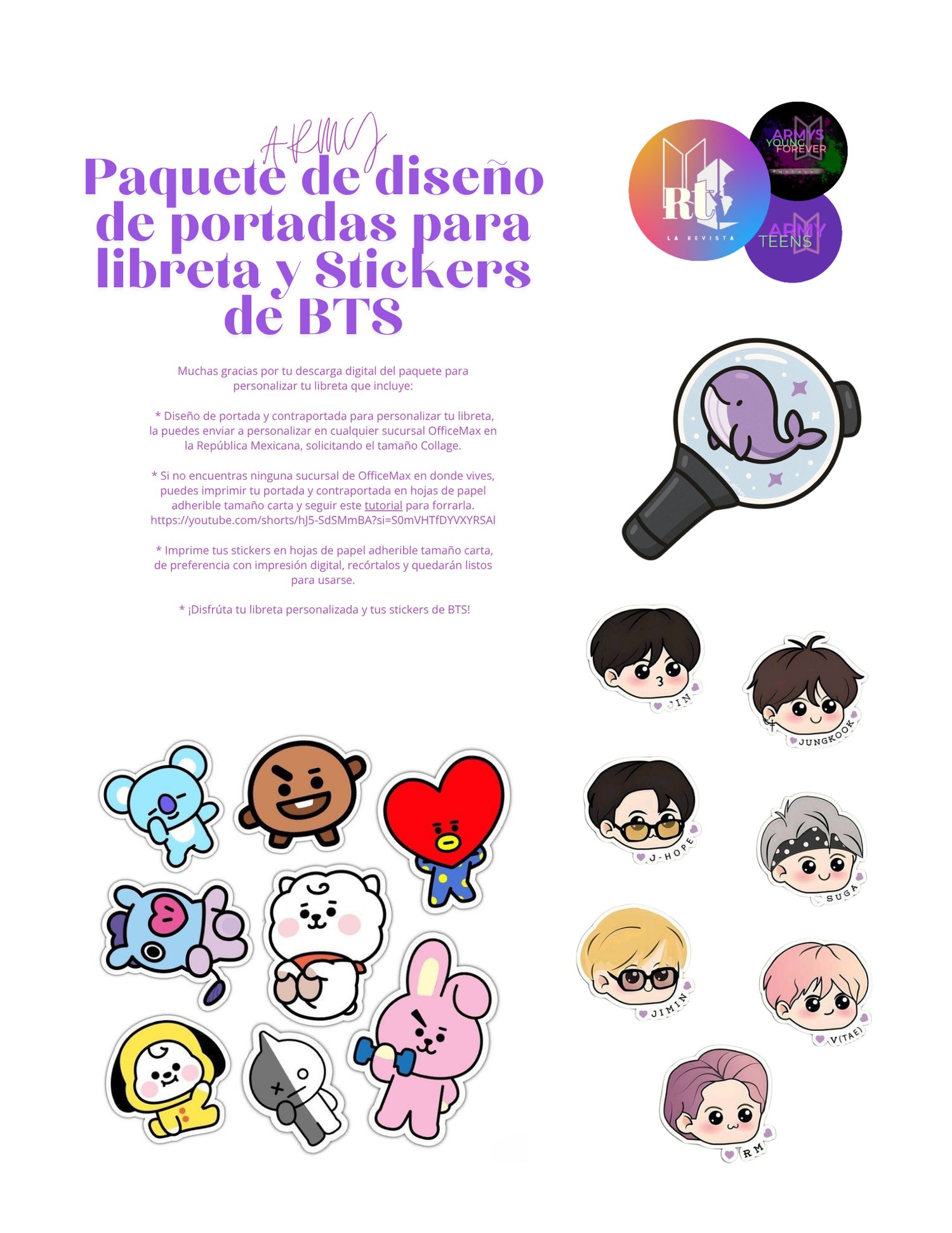 - Portadas imprimibles (PDF) para personalizar tu libreta con un diseño de BTS.