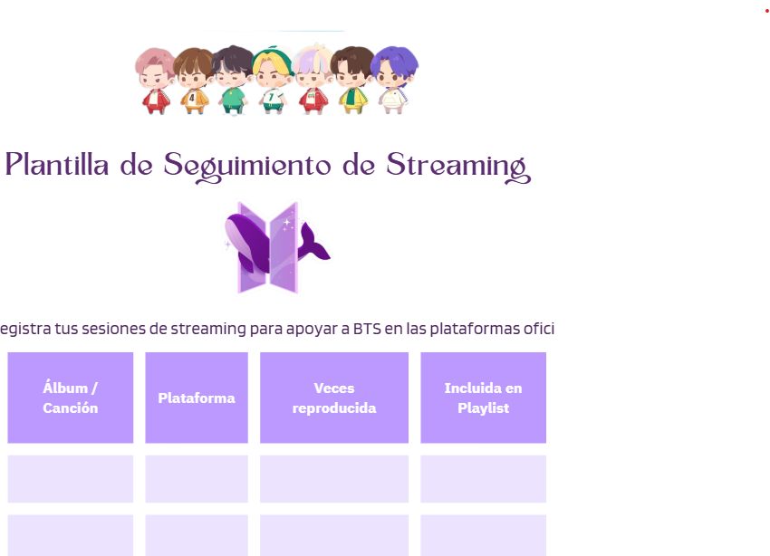 Con el Kit Streamer BTS podrás organizar tu tiempo para dedicarte a hacer streaming a BTS de manera organizada y con un registro de seguimiento mientras realizas y organizas tus demás actividades.