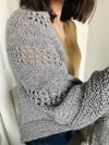 Large: Shibui Knits Nest, DK, 4 skeins, [75% Fine Highland Wool/25% Alpaca; 175 yards (160 m)/50 grams] or any dk weight yarn of your choosing. Sample uses color Bone, approx. 700 yards (640 m)