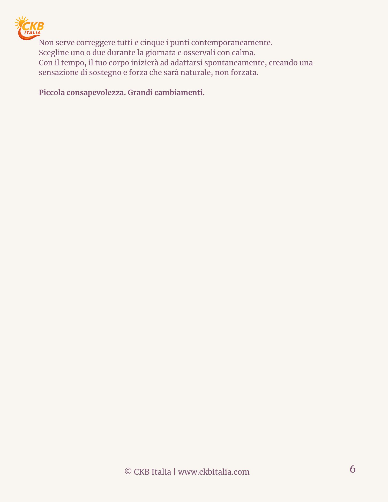 Scoprirai come piccoli cambiamenti possono creare trasformazioni reali—senza stress, senza pressioni e senza esercizi complicati.