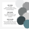 + Detailed Hex Codes, RGB, and CMYK values for each color