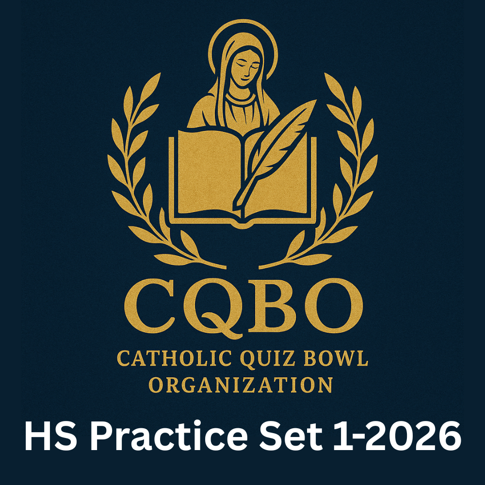 This document includes the CQBO High School Practice Set of Questions. This is Set 1-2026, which includes 3 games of 20 tossup and 20 bonus questions, for a total of 120 Catholic quiz bowl practice questions for high schoolers.