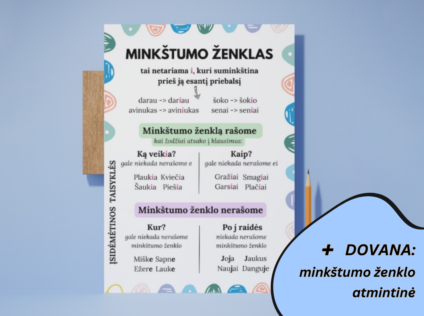 Pirkdami šias užduotis, nemokamai gausite minkštumo ženklo atmintinę su pagrindinėmis taisyklėmis ir pavyzdžiais (pdf).